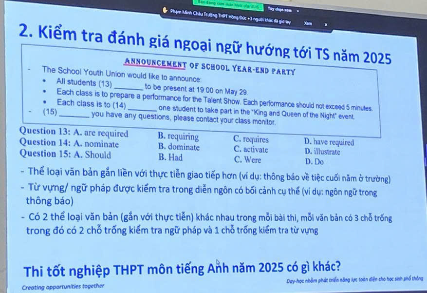 Những thay đổi này không chỉ là thêm dạng câu hỏi mới mà còn định hướng lại cách dạy và học Tiếng Anh ở bậc phổ thông: